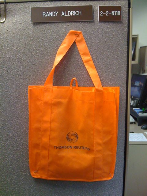 Our Christmas gift at work was pretty lame this year. They gave us orange reusable grocery bags with the company logo on it. Yes, exactly like the reusable Wegmans bags you can buy for $.99.