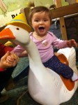 We went to the Sandbox yesterday for a friends birthday. Lilah got to play with a lot of new toys and her favorites were the ride-on types. Besides a dragon and a goose, the laundry basket and an empty box or two it was the first time she’s played with one.
